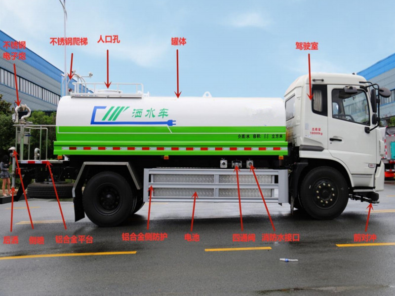 其它 | 隨底盤選裝鋁制輪輞、黑底LOGO;側(cè)面防護裝置材料為鋁合金100,與車輛采用螺栓連接;后防護尺寸(mm):2350x60x120x5,離地高度420mm;采用Q345A材料,螺栓連接。動力蓄電池種類:磷酸鐵鋰蓄電池,生產(chǎn)企業(yè):深圳市比亞迪鋰電池有限公司(單體),汕尾比亞迪汽車有限公司(總成);驅(qū)動電機類型:永磁同步電動機,額定功率150kW,峰值功率180kW,生產(chǎn)企業(yè):長沙市比亞迪汽車有限公司;ABS系統(tǒng)生產(chǎn)企業(yè):威伯科汽車控制系統(tǒng)(中國)有限公司,ABS系統(tǒng)型號:ABS-E;電池布置位置:車輛底部;罐體總?cè)萘?8.736立方米,有效容積:8.32立方米,罐體外形尺寸(長×長軸×短軸(mm)):4800×2100×1250,專用裝置:罐體和噴灑系統(tǒng),主要用于園林綠化及路面灑水。選裝配件位置及后部指示燈具 | ||